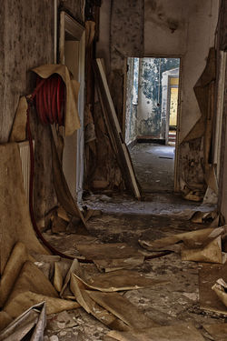 I made several visits to the site, it was easely accesible and busy, I met few people walking around with their dogs. Some buildings seems really in advanced decay, others a little bit less. The first visit, a gloomy rainy day, I was able to enter the premisses through a broken window and managed to take few photos from the inside. Being inside at first was very creepy, very dark and I recall staying on the spot for several seconds trying to record every sound I could possibly hear, before making few small steps. After a while I started to get more adjusted to the darkness of the place. But that's when an alarm came blaring all around. My heart jumped and I ran back the same way I came from, passing that high window with no problem at all !